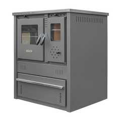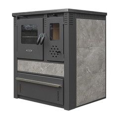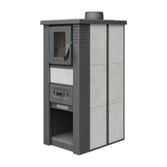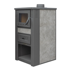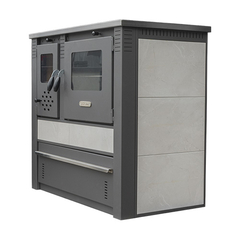 Pro-termo Піч сталева з конфорками +духовка (дверцята сталеві +скло) "Panonia left" 10,5 кВт. (111кг./димохід 120мм./510x900x850мм./кераміка колір gray)