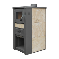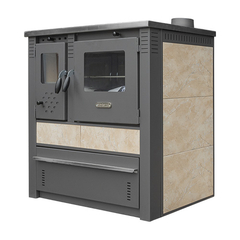 Pro-termo Піч сталева з конфорками +духовка (дверцята сталеві +скло) "Panonia right" 10,5 кВт. (111кг./димохід 120мм./510x900x850мм./кераміка колір beige/bez)