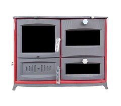 "GURKAN" (Туреччина) Камін плита з конфорками+2 духовки (двер.чавун+скло, топка чавун) 9 кВт. 135кг./ш985г470в740мм. Арт.FUJII (червоний)