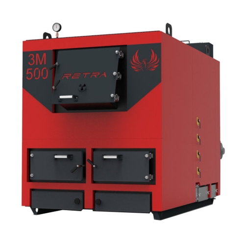 Котел т/п "РЕТРА" PLUS (з автоматикою) 50 кВт (сталь 6мм.530кг./дим.250мм./підк.2"зовн./1590х825х1390мм.) Арт.50-3M