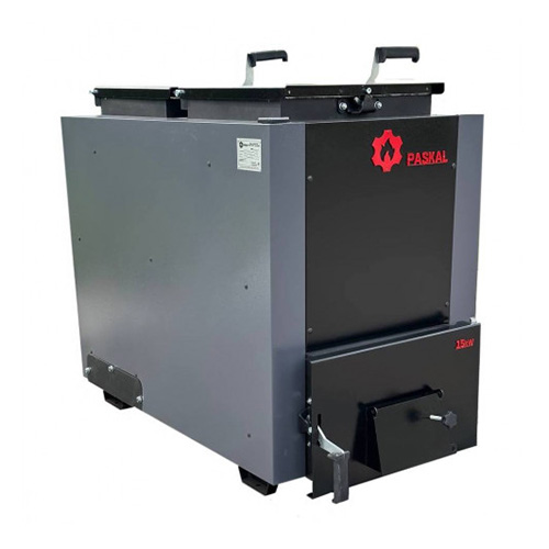 Котел т/п "PASKAL" STOUTUP 15 кВт. верхня загрузка (сталь 4мм./280кг./дим.160мм./під.6/4" зовн./1000х645х1250мм.)