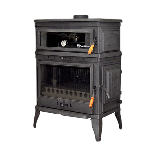 "FLAMESTOVE" (Туреччина) Камін чавунний "FS-044YK" (духовка, дверцята скло+бічна дверка) 13 кВт. 149кг./ш700г480в1010мм.
