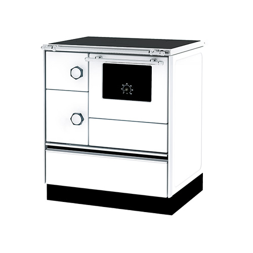 "ALFA-PLAM" Камін плита з конфоркою +духовка +теплообмінник (двер.мет.+скло) 12 кВт./152 кг./ш700г600в850мм. Арт.ALFA 70 E TERMO (БІЛИЙ-ЛІВИЙ)