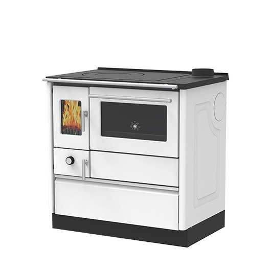 "ALFA-PLAM" Камін плита з конфоркою +духовка (двер.мет.+скло) 8 кВт./145 кг./ш750г613в887мм. Арт.ALFA 85 G (БІЛИЙ-ПРАВИЙ)
