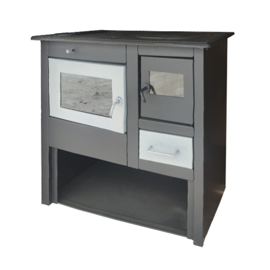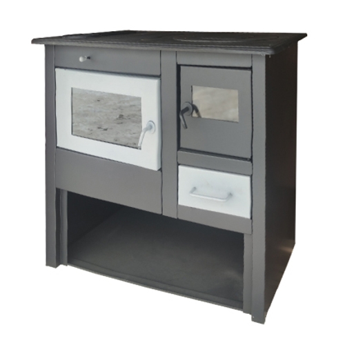 Termosistem Камін-піч з конфорками + духовка (дверцята сталеві +скло) "TERMO OSAM L" 8,5-9,5 кВт. (80кг.) "ЧОРНИЙ" (ЛІВИЙ)