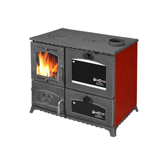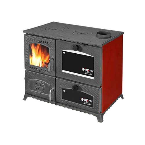 "GURKAN" (Туреччина) Камін плита з конфорками+2 духовки, бокове скло (двер.чавун+скло, топка чавун) 12кВт. 115кг./ш890г480в710мм. Арт.OLIMPOS (червоний)