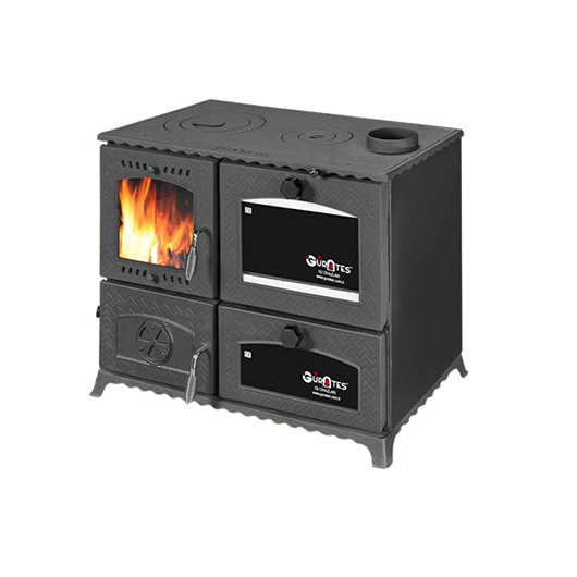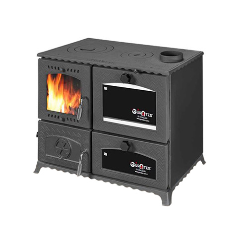 "GURKAN" (Туреччина) Камін плита з конфорками+2 духовки (двер.чавун+скло, топка чавун) 12кВт. 105кг./ш830г455в680мм. Арт.PARIS (чорний)