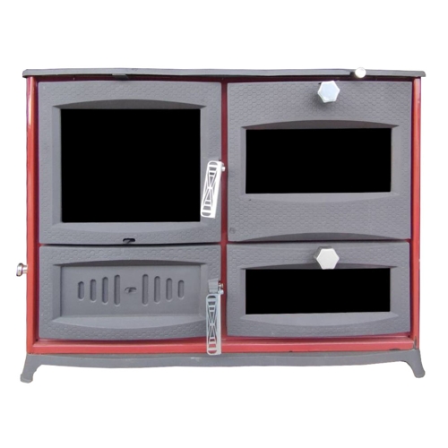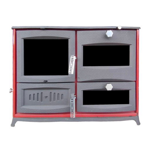 "GURKAN" (Туреччина) Камін плита з конфорками+2 духовки, бокове скло (двер.чавун+скло, топка чавун) 12 кВт. 135кг./ш985г470в740мм. Арт.FUJII (червоний)