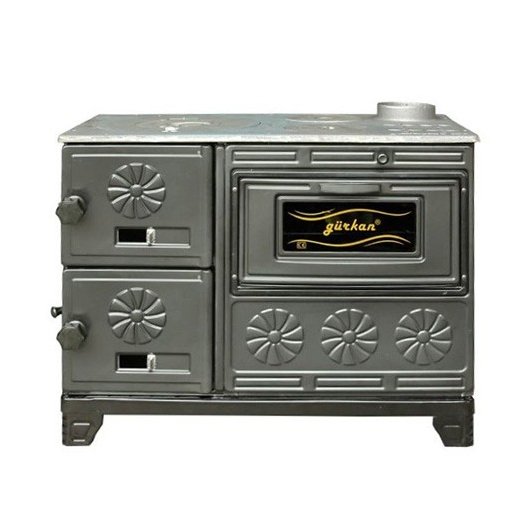 "GURKAN" (Туреччина) Камін плита з конфорками+духовка (двер.метал, топка чавун) 8 кВт. 57кг./ш800г420в610мм. Арт.304 (чорний)