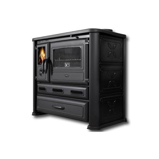 Tim Sistem Камін-піч з конфоркою +духовка (дверцята чавун +скло) 9 кВт. (80кг./дим.120мм./925x550x800мм.) Арт.ALMA MONS BLACK (лівий)