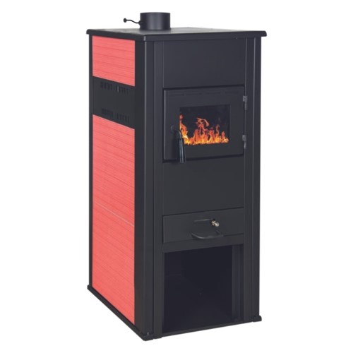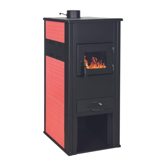 Termosistem Камін квадратний верх прямий (дверцята сталеві +скло) з водяним контуром "ETAZ A" 9 кВт. (90кг.) "КЕРАМІКА-ЧЕРВОНИЙ"