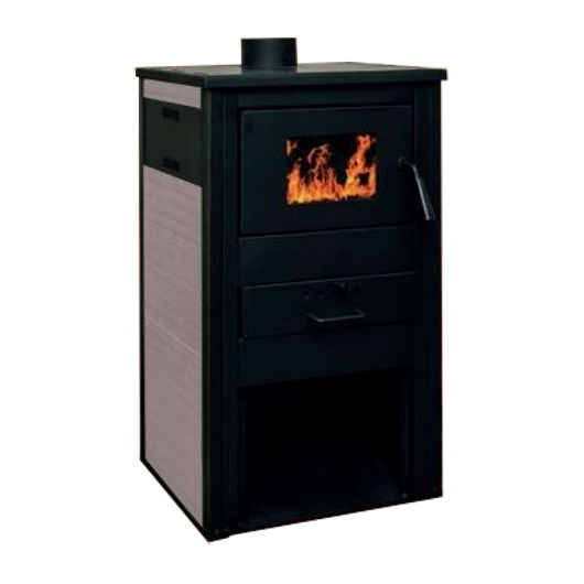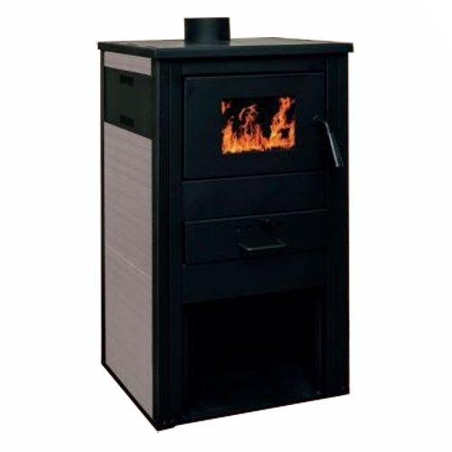 Termosistem Камін квадратний верх прямий (дверцята сталеві +скло) з водяним контуром "VALJEVAC LUX ETAZ" 10-12 кВт. (75кг.) "КЕРАМІКА-КРЕМОВИЙ"