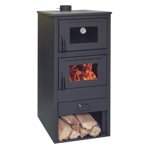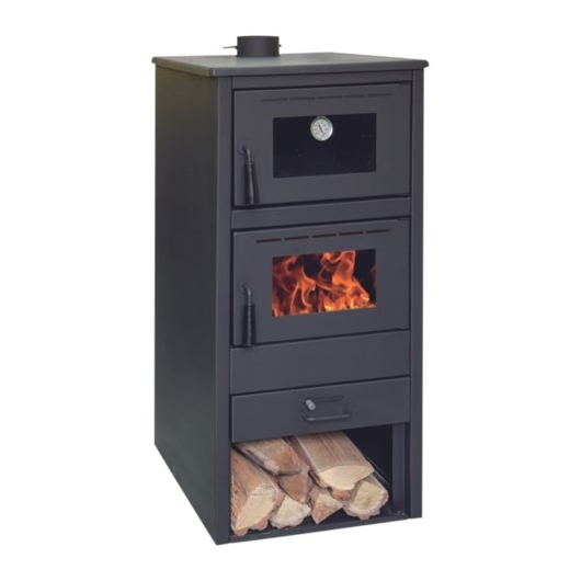 Termosistem Камін-піч квадратний верх прямий (дверцята сталеві +скло) "ROBOT" 11-13кВт. (100кг.) "ЧОРНИЙ"