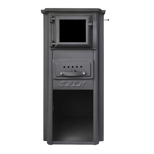 SPIN PLAM Камін квадратний верх прямий (дверцята чавун +скло) "KALIMERO" 6 кВт. (46кг.)