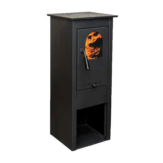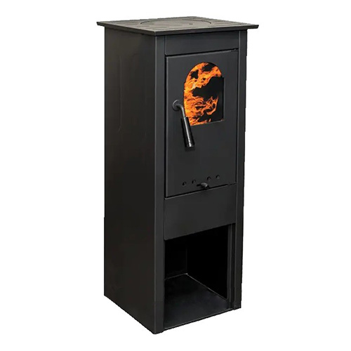 Termosistem Камін з конфоркою квадратний верх прямий (дверцята сталеві +скло) "KLASIK EKO LUX G" 5-7 кВт. (40кг.) "ЧОРНИЙ"