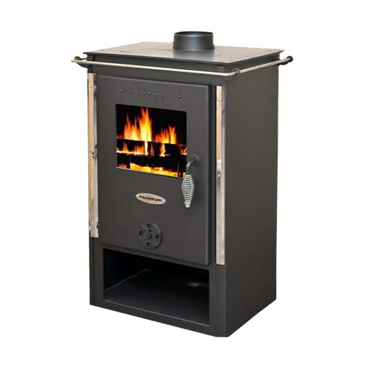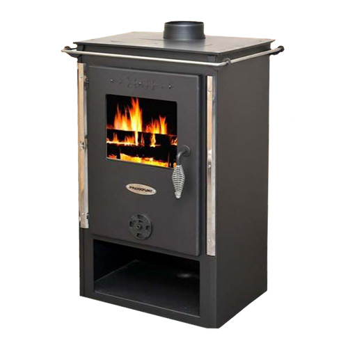 Termosistem Камін квадратний верх прямий (дверцята сталеві +скло) "FRANKFURT" 7,5 кВт. (50кг.) "ЧОРНИЙ"