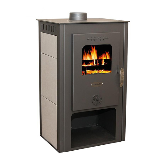 Termosistem Камін квадратний верх прямий (дверцята сталеві +скло) "LONDON" 7,5 кВт. (70кг.) "КЕРАМІКА-КРЕМОВИЙ"