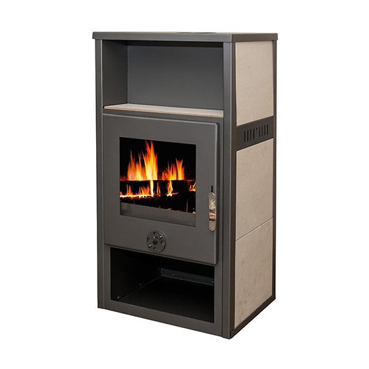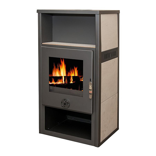 Termosistem Камін квадратний верх прямий (дверцята сталеві +скло) "NAPOLI" 7 кВт. (75кг.) "КЕРАМІКА-КРЕМОВИЙ"