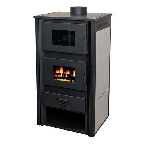 Termosistem Камін-піч квадратний верх прямий (дверцята сталеві +скло) "CIRIH" 10 кВт. (85кг.) "КЕРАМІКА-КРЕМОВИЙ"
