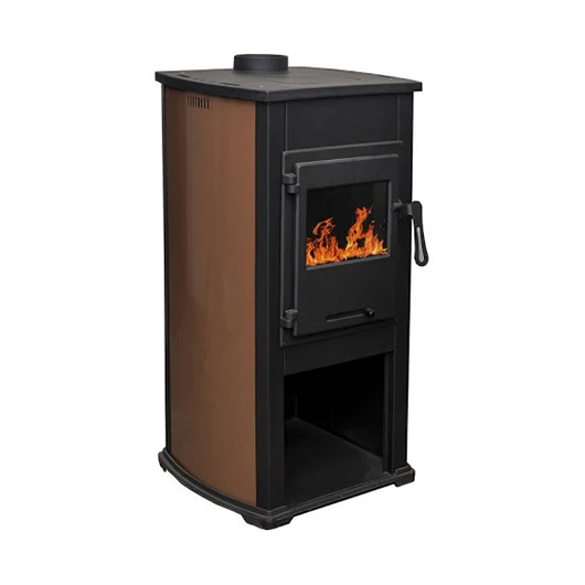 Termosistem Камін з конфоркою квадратний верх прямий (дверцята ЧАВУН +скло) "ELEGANT" 7-9 кВт. (60кг.) "КОРИЧНЕВИЙ"