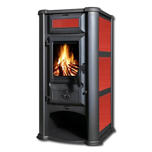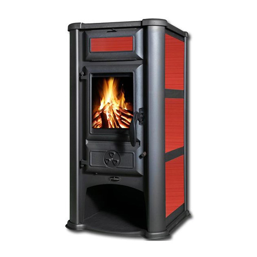 Tim Sistem Камін квадратний верх прямий (дверцята чавун +скло) 11 кВт. (102кг./дим.120мм./490x560x950мм.) Арт.LEDERATA ceramic RED