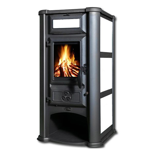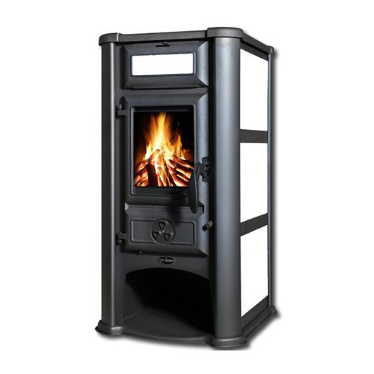 Tim Sistem Камін квадратний верх прямий (дверцята чавун +скло) 11 кВт. (102кг./дим.120мм./490x560x950мм.) Арт.LEDERATA ceramic WHITE