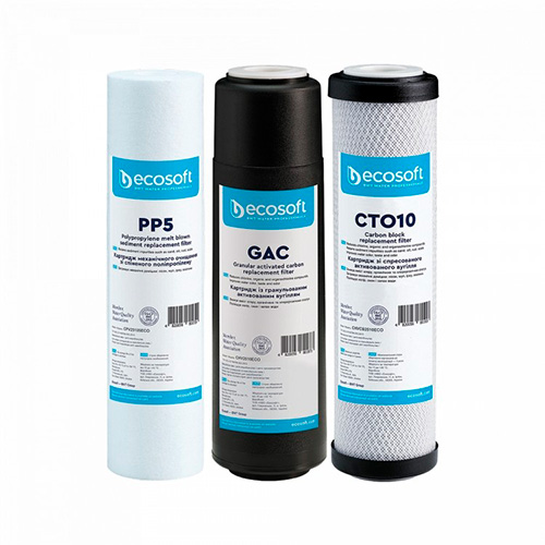 Покращений комплект картриджів для фільтрів зворотного осмосу "Ecosoft" (1-2-3) Арт.CHV3ECO