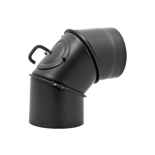 "KAISER" Димохідне коліно чорне (РЕГУЛЮЮЧЕ-----Три елем.) З ШИБЕРОМ ф120mm.