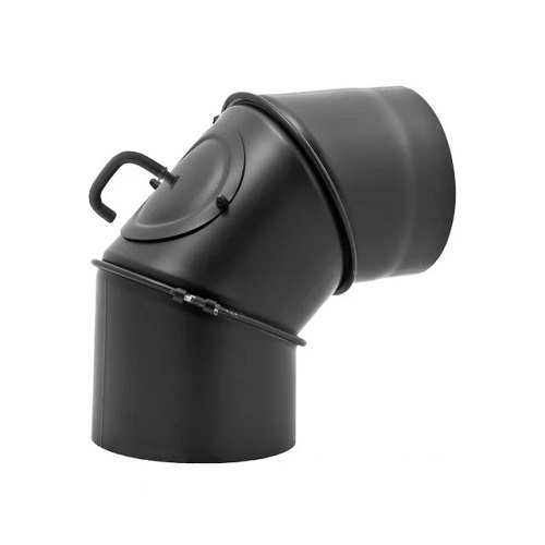 "KAISER" Димохідне коліно чорне (РЕГУЛЮЮЧЕ-----Три елем.) З ШИБЕРОМ ф130mm.