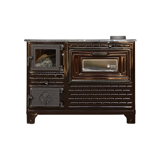 "EFORISI" (Туреччина) Камін плита з конфорками+духовка EFS-10 L (дверцята чавун+скло, топка цегла з ліва) 8,6 кВт. 46кг./ш820г430в620мм. (КОРИЧНЕВИЙ) (0016)