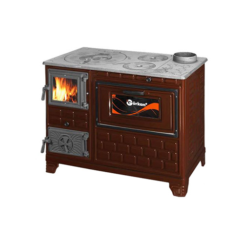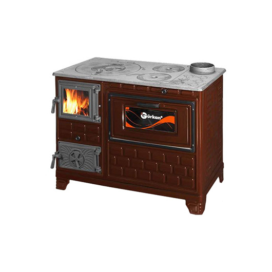 "GURKAN" (Туреччина) Камін плита з конфорками+духовка (двер.чавун+скло, топка чавун) 7 кВт. 49кг./ш800г420в610мм. Арт.406 (коричневий)