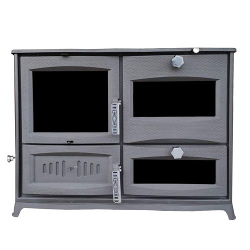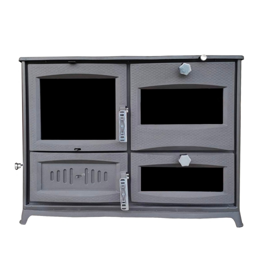 "GURKAN" (Туреччина) Камін плита з конфорками+2 духовки, бокове скло (двер.чавун+скло, топка чавун) 12 кВт. 135кг./ш985г470в740мм. Арт.FUJII (чорний)