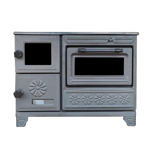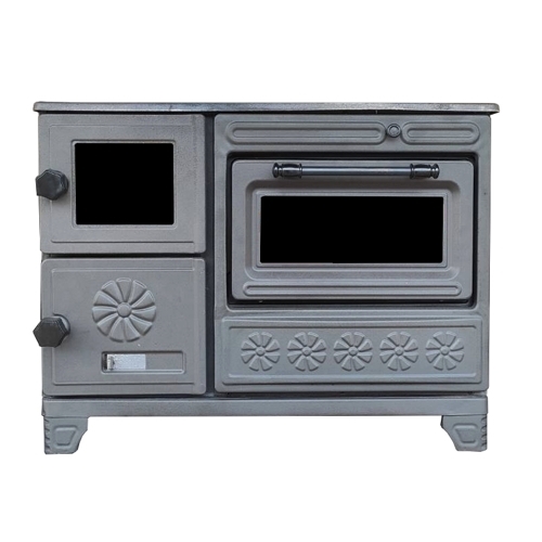 "GURKAN" (Туреччина) Камін плита з конфорками+духовка (двер.метал+скло, топка чавун) 8 кВт. 57кг./ш800г420в610мм. Арт.299 (чорний)