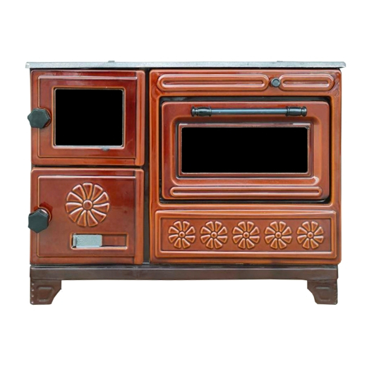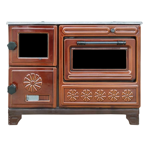 "GURKAN" (Туреччина) Камін плита з конфорками+духовка (двер.метал+скло, топка чавун) 8 кВт. 57кг./ш800г420в610мм. Арт.297 (коричневий)