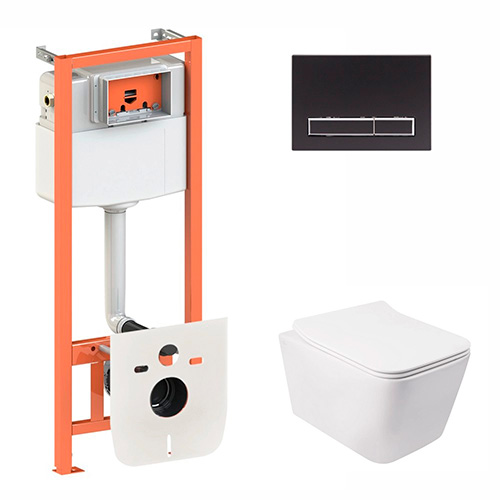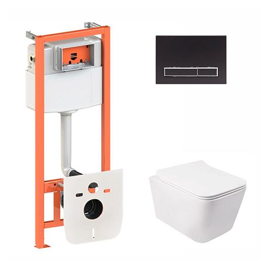 Комплект "Q-TAP" CROW (унітаз підвісний QT05335170W + інсталяція QT0133M425 + квадратна клавіша BLACK MAT QT0111M08V1091MB)