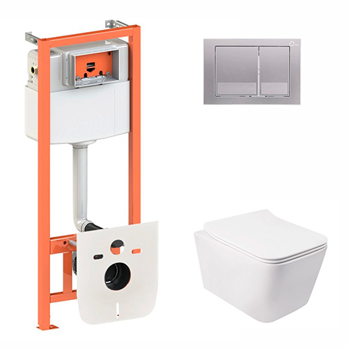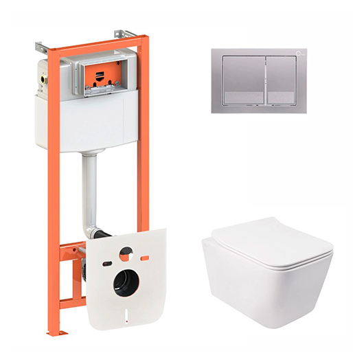 Комплект "Q-TAP" CROW (унітаз підвісний QT05335170W + інсталяція QT0133M425 + квадратна клавіша SATIN QT0111M06029SAT)