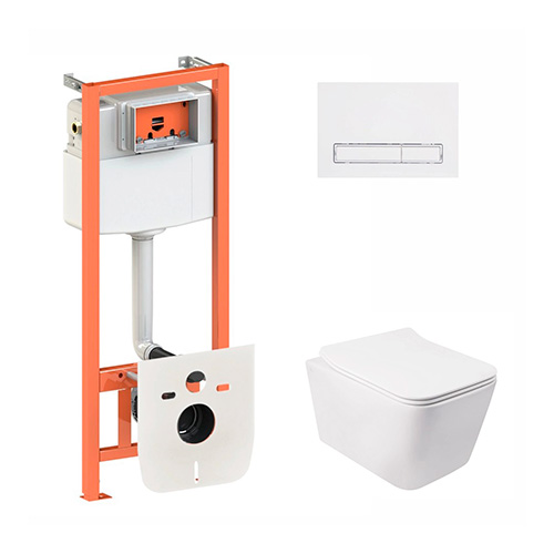 Комплект "Q-TAP" CROW (унітаз підвісний QT05335170W + інсталяція QT0133M425 + квадратна клавіша White QT0111M08V1384W)
