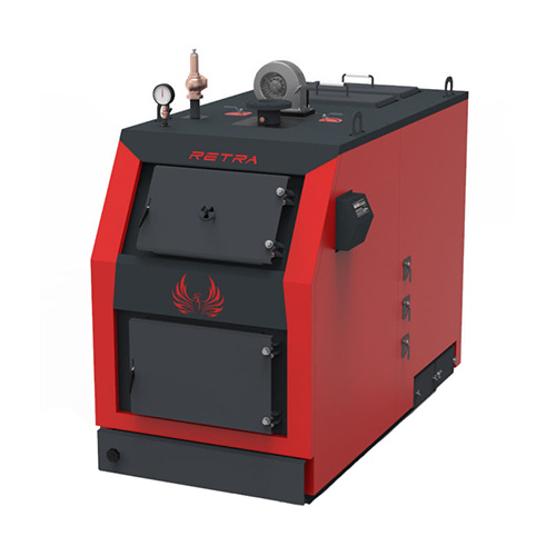 Котел т/п "РЕТРА" PLUS (з автоматикою) 125 кВт (сталь 6мм./1240кг./дим.250мм./підкл.Фл 65./1970х1060х1740мм.) Арт.125-3M