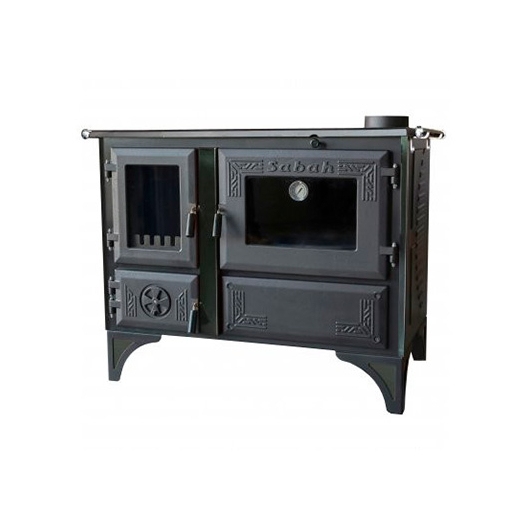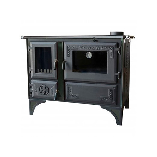 "SABAH" (Туреччина) Камін плита з конфорками+духовка (двер.чавун+скло, топка чавун) 15,6 кВт. 112кг./ш880г500в739мм. Арт.S105 BLACK (SIYAN)