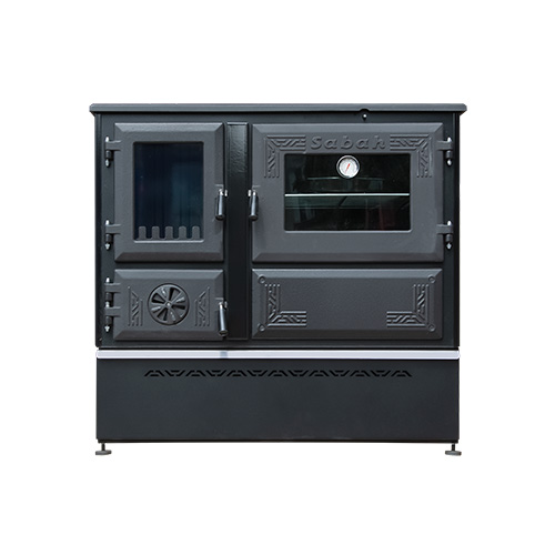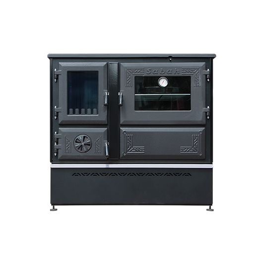 "SABAH" (Туреччина) Камін плита з конфорками+духовка (двер.чавун+скло, топка чавун) 15,6 кВт. 123кг./ш880г500в817мм. Арт.S104 BLACK (SIYAN)