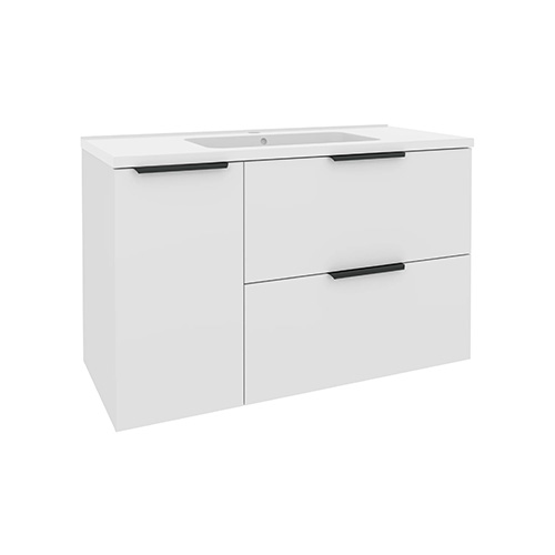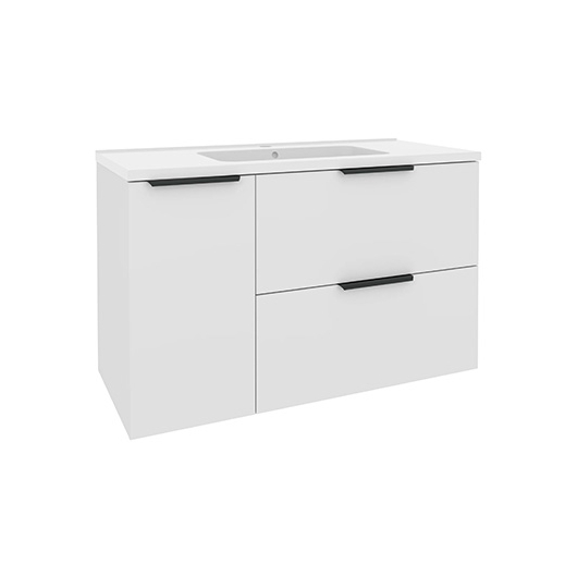 Тумба підвісна з корзиною праворуч "Mirater" ФЕСТ (1000*630*450мм.)(колір білий) з раковиною "Родео 100" Арт.000008231