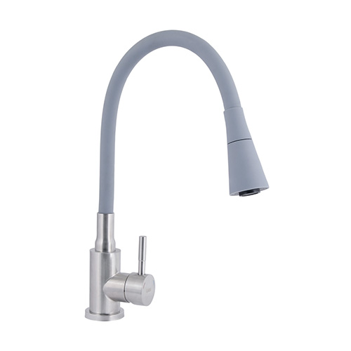 Змішувач (35) "LIDZ" Aria (нержавійка) Кухня гнучкий "ПРУЖИНА" НА ГАЙЦІ сірий гусак Арт.015 F31 (LDARI015F31GNK31871)