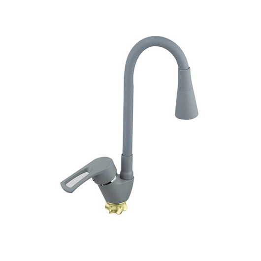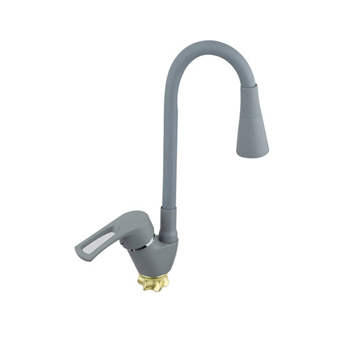 Змішувач (40) ZEGOR (колір сірий) кухня гнучкий "ПРУЖИНА" НА ГАЙЦІ гусак сірий Арт.YUB4-G181GY