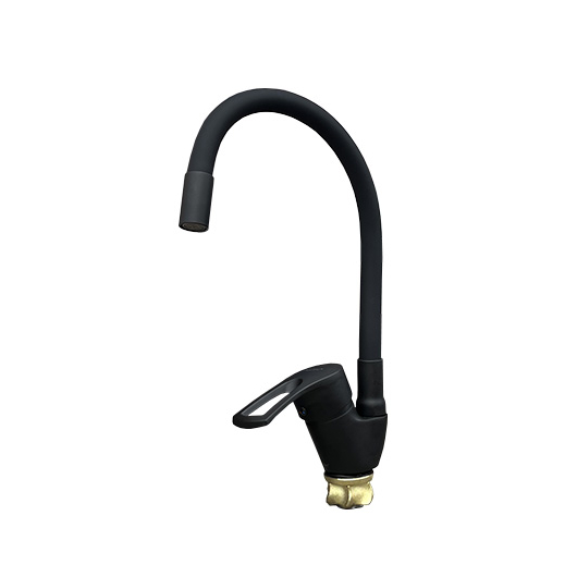 Змішувач (40) ZEGOR кухня гнучкий "ПРУЖИНА" НА ГАЙЦІ гусак чорний Арт.YUB4-F181YB