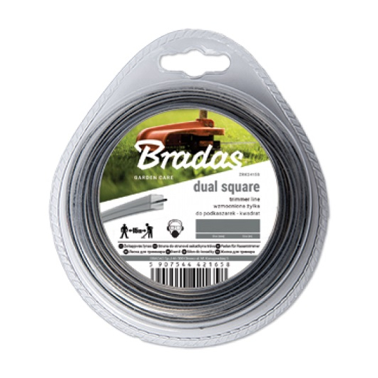 Ліска для тримера "Bradas" RIPPER DUAL ф2,0мм.х15м. (квадрат) сіра (посилена з армуванням) (уп. блістер) Арт.ZRK2015B
