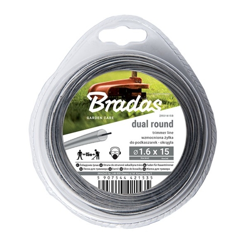 Ліска для тримера "Bradas" RIPPER DUAL ф2,4мм.х15м. (кругла) сіра (посилена з армуванням) (уп. блістер) Арт.ZRO2415B