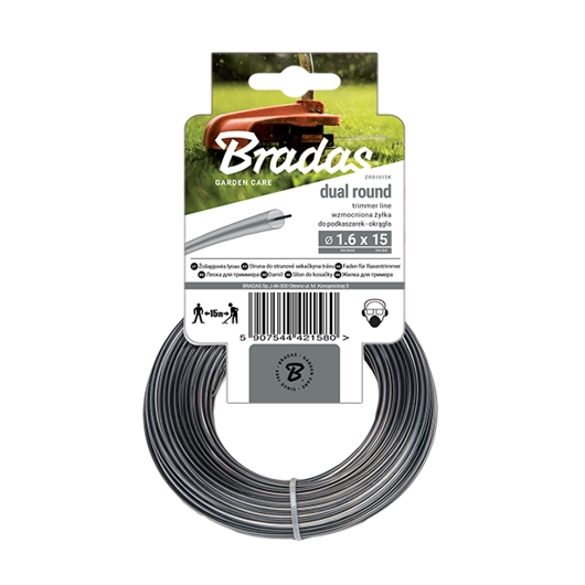 Ліска для тримера "Bradas" RIPPER DUAL ф3,0мм.х15м. (кругла) сіра (посилена з армуванням) (уп. картонка) Арт.ZRO3015K