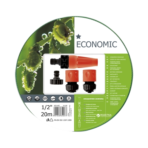 Шланг полив "Cellfast-ECONOMIC" тришаровий (зелений) 1/2 (бухта 20м.+ПОЛИВОЧНИЙ НАБОР)