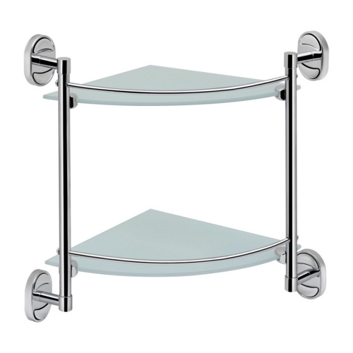 "LIDZ" Полка настінна скляна 380х300х300мм. з бортиком кутова 2-х ярусна (скло мат.) Арт.(CRG)-114.10.02