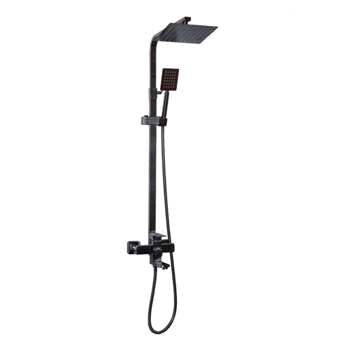 Колонна для душа "MIXXUS" (ЧОРНИЙ МАТ) (труба+змішувач ванна+верхня лійка квадратна+шланг з лійкою) Арт.KUB-009-J BLACK